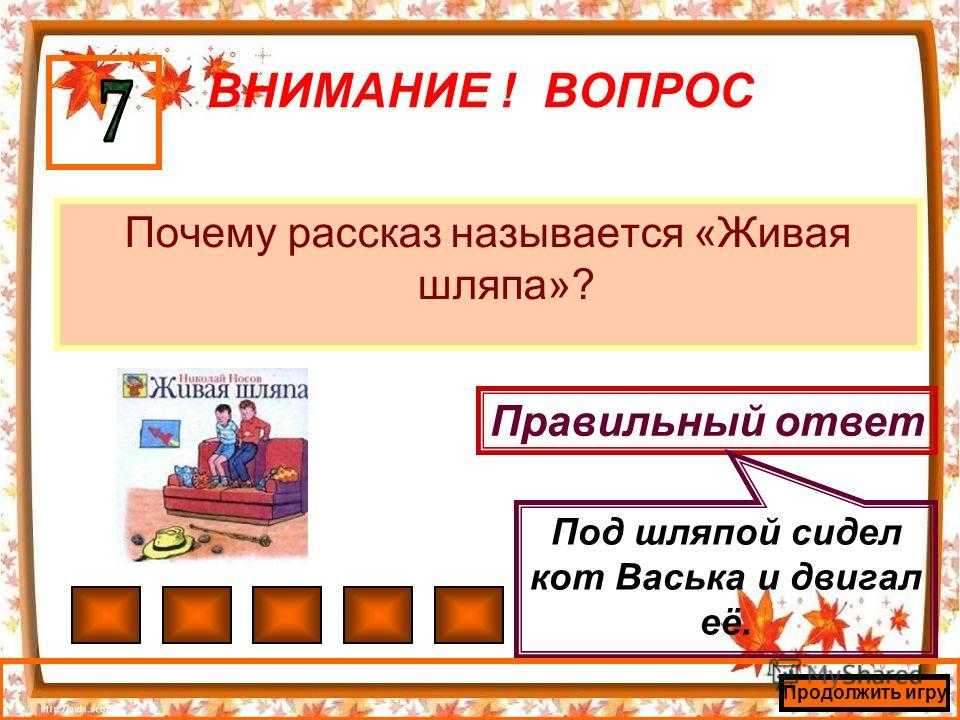 Викторина по рассказу Носова «Живая шляпа» | Тест по чтению (2 класс) по теме: